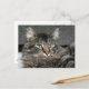 Tablette gris Maine Coon mélange chat regards de cette carte postale photo, menton presque enseveli dans son rouff ou crinière.