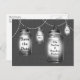 Des pots Mason rustiques suspendus à des guirlandes de lumières scintillantes, sur un fond illustré de toile de jute ornent ce Enregistrer la date. Faites défiler vers le bas pour voir la collection de mariage complète.