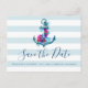Carte Postale Faire-part Ancre D'Aquarelle Bleu Nautique Enregistrer La Dat