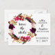 Carte Postale Faire-part Aquarelle florale bourguignonne Enregistrer la dat