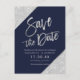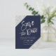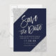 rose Gold typographie sur personnalisable marine bleu argenté bloc couleur parties scintillant, et faux silvergéométrique bandes chic enregistrer le mariage date, parfait pour élégant, élégant mariage,