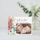 Carte postale Automne que vous pouvez personnaliser avec votre photo bébé et votre message. Fall in love est écrit en écriture manuscrite décontractée et le design a une histoire de couleur de terre neutre genre pour un bébé garçon ou petite fille. Le bouquet d'automne aquarelle d'anémone, de pavot et de fleur sauvage dans les nuances de crème de pêche rouille sienne orange brûlée et brune, encadré de verdure délicate. Parfait pour annoncer la naissance de votre bébé à l'automne ou à la saison d'action de grâce.