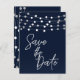 Carte Postale Faire-part Blue String Lights Script moderne Enregistrer la d