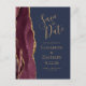 Carte Postale Faire-part Burgundy Gold Agate Marine Bleu Enregistrer la dat