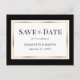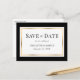 Élégante carte postale de mariage noir et or "save the date" avec un cadre doré encadrant les détails du mariage. Articles assortis disponibles.