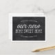 Cette jolie annonce de changement d'adresse rustique présente la phrase "Notre nouveau chez-nous" écrite en élégante calligraphie "crayonnée", un cadre de laurier, et un fond de tableau noir. Ajoutez votre nouvelle adresse au verso de la carte postale.