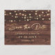 Mariage en bois rustique personnalisé sauvegardez les cartes postales datées avec un arrière - plan en bois rustique orné de lampes à cordes. Personnalisez facilement cette rustique enregistrer la carte postale de date avec vos détails mariages. Pour des demandes personnalisées, envoyez-nous un message.