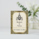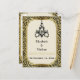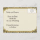 Carte de préavis de mariage Art Déco avec lustre noir et or, présentant un lustre noir, une bordure de style Art Déco et un damas floral noir et or sur fond beige/ecru. Ce design élégant est une approche moderne d'un style vintage/retro qui ressemble à celui des Années folles et du Gatsby le Magnifique. Il fait partie d'une collection de mariage et est entièrement personnalisable.
