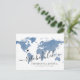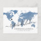 Texture de carte du monde à l'aquarelle bleu poussiéreux, carte postale pour reporter ou reporter un mariage avec un texte entièrement modifiable pour que vous puissiez expliquer autant ou aussi peu que vous le souhaitez, et fournir un site web aux invités pour vérifier les mises à jour et les changements. —— Cliquez sur PERSONNALISER DAVANTAGE pour déplacer le cœur, changer la couleur de fond et le texte, changer les polices, ou réorganiser l'ensemble et créer votre propre design en utilisant notre unique carte d'art à la feuille d'or fausse. —— Parfait pour les lieux de mariage de destination tropicale, plage, île, ville, montagne et aventure dans le monde entier. Vérifiez notre boutique de créateur pour les articles coordonnés... plus tard. Nous avons compris.