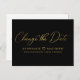 Ces cartes de changement de date présentent un design élégant de faux foil or sur fond noir. Personnalisez l'avant et l'arrière avec votre propre texte.