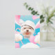 Carte Postale Faire-part Chien Fluffy avec Chapeau Blanc