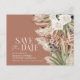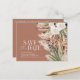Carton d'invitation de mariage à la ferme rustique moderne avec fleurs botaniques bohèmes, herbe de pampas naturelle et eucalyptus botanique. Élégant floral aquarelle de classe dans des tons terracotta, vert sauge, crème naturel et noir. Espace au dos de cette invitation de mariage économique pour des informations et un code QR pour tous les détails de votre mariage.