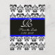 CARTE POSTALE FAIRE-PART DAMAS MONOGRAMME NOIR BLEU ET BLANC