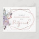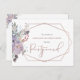 Annoncez le report de votre mariage avec ces cartes postales avec un beau bouquet floral aquarelle boho de fleurs sauvages dans des tons de violet, lilas, bleu poussiéreux, pêche, rose et verts et accentué d'un design géométrique en rose gold ou en terre cuite et un titre en typographie manuscrite et un texte en gris charbon. Le verso offre une zone entièrement modifiable pour personnaliser votre message. Contactez le concepteur via Zazzle Chat ou makeitaboutyoustore@gmail.com si vous souhaitez que ce design soit modifié, sur un autre produit ou si vous souhaitez des articles coordonnés.