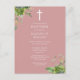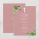 Cette élégante carte postale d'invitation de baptême ou de christening avec verdure d'eucalyptus et rose poussiéreuse peut être personnalisée avec vos informations en typographie chic avec les initiales du monogramme au verso. Conçu par Thisisnotme©