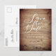 Carte Postale Faire-part de date de sauvegarde de script de bois