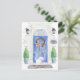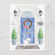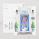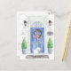 Annoncez votre nouvelle adresse avec notre faire-part élégante avec une porte d'entrée bleue maltaise, tapis de bienvenue, ardoise, topiaires et une couronne fleurie posée sur un arrière - plan en brique grise.