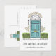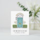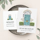 Annonces modernes et charmantes, faites connaître à vos amis et à votre famille votre nouvelle maison douce! Le design présente une illustration esquissée d'une porte d'aqua flanquée de buissons verts, avec "venez frapper à notre porte" sous la surface. Personnalisez avec votre nouvelle adresse et votre nom de famille ou vos noms au verso, avec de l'espace pour l'adressage du destinataire.