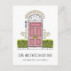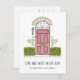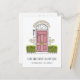 Annonces modernes et charmantes, faites connaître à vos amis et à votre famille votre nouvelle maison douce! Le design présente une illustration de porte rouge esquissée flanquée de buissons verts, avec "venez frapper à notre porte" sous la forme d'un dessin. Personnalisez avec votre nouvelle adresse et votre nom de famille ou vos noms au verso, avec de l'espace pour l'adressage du destinataire.