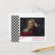 Cette faire-part élégante et sophistiquée présente une photo de l'étudiant diplômé de l'université ou du lycée. Le design comprend un script rouge contemporain écrit à la main et superposé sur les photos. Le texte au verso de la carte peut être customisé pour créer un faire-part de graduation de base ou une invitation de partie pour le diplômé.
