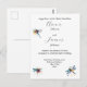 Ce faire-part de mariage enchanteur est joliment décoré avec des libellules colorées d'aquarelle, symbolisant l'amour, le changement et de nouveaux débuts. Délicatement peintes dans des tons chatoyants de bleu, violet, vert et jaune, les libellules flottent gracieusement à travers le design, créant une atmosphère fantaisiste et romantique. Les noms du couple sont présentés dans une élégante police romaine d’emeline et de garamond, assurant un look raffiné et accueillant. Cette invitation donne le ton parfait pour une célébration magique et inoubliable.