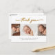 Carte de remerciement de naissance avec 3 photos au script élégant. Le verso comprend un message de remerciement que vous pouvez personnaliser ou supprimer si vous préférez écrire votre remerciement à la main.