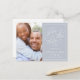 Simple et élégant, notre photo Romantic Request enregistrer la date carte postale comprend votre photo fiançailles préférée sur le côté gauche, avec vos détails mariages sur la droite. "Save the date" apparaît dans la typographie de script blanc avec un coeur chic travaillé dans le design, contre un arrière - plan gris-bleu clair. Personnalisez avec vos coordonnées de mariage, y compris les noms, la date et l'emplacement du mariage, et ajoutez des détails supplémentaires au verso, y compris votre site Web mariage et votre adresse de retour.