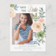 Élégant script moderne lycée ou collégial faire-part photo carte postale avec fleurs d'aquarelle rose vif et verdure. Personnalisez avec votre photo et votre texte.