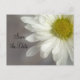 Donnez le ton pour votre prochaine cérémonie de mariage avec l'élégante Soft White Daisy sur Grey Wedding Save the Date Postcard Faire-part. Ce mariage botanique personnalisé et élégant garde les cartes postales datées avec une photo florale à exposition multiple d'une fleur marguerite blanche avec un centre jaune et arrière - plan gris.