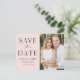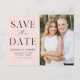 Annoncez la date de votre mariage avec cette carte postale "save the date" photo élégante et moderne. Le design présente "Save the Date" dans des polices sérif noir et script sur un fond rose blush. Personnalisez l'annonce minimaliste "save the date" en ajoutant vos noms, date, lieu de mariage et photo. La carte postale "save the date" est réversible pour afficher votre adresse de retour et les détails du mariage. L'annonce simple "save the date" est parfaite pour n'importe quel thème de mariage.