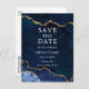 Carte Postale Faire-part Élégant Bleu Marbre Géode Enregistrer La Date