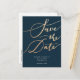 Carte Postale Faire-part Elegant Navy Gold Script Enregistrer la date