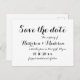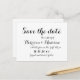 Élégant script Calligraphie noir et blanc Mariage Enregistrer la date Faire-part Carte postale. Noir et blanc