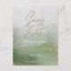 Awash Elegant Watercolor Texture in Foliage colorway of Light Spring Leafy Green, and faux Gold Foil à la main accents. Mariage élégant Enregistrer la date Cartes postales Avec jolie Calligraphie Signature Script police! ~ Regardez ma boutique pour voir l'ensemble de la suite mariage pour ce design!