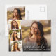 Elégante carte postale faire-part de graduation avec la photo du diplômé superposée avec une bande de trois plus petites photos de carré et "Graduate" dans un script blanc moderne et leur nom et année de classe dans une simple typographie blanche. Au verso, ajoutez une photo supplémentaire et un message personnalisé.