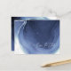 Un arrière-plan abstrait rappelant l'encre liquide dans des nuances de bleu marine profond passant par le cyan et le blanc est le fondement de texte en écriture manuscrite élégante et de mises en page de conception modernes dans les pièces de cette belle suite de mariage. La carte postale de sauvegarde de date de mariage présentée ici présente ce qui précède et un modèle pour ajouter vos propres informations d'événement pertinentes. Recherchez ID762 pour voir toutes les pièces coordonnées dans cet ensemble.