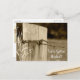 Annoncez vos noces chic de pays à venir avec le charme Rural Fence Post Farm Wedding Save the Date Postcard Faire-part. Ce mariage rustique décontracté mais élégant de l'Ouest garde la carte datant présente une charmante ferme sépia en noir et blanc d'un poteau de clôture en bois et de fil barbelé. Idéal pour une visite ou une idée pour une cérémonie de grange informelle et élégante et un événement de réception.
