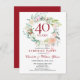 Avec une délicate guirlande florale aquarelle, cette invitation chic et botanique pour une fête surprise de 40e anniversaire de mariage peut être personnalisée avec vos informations spéciales d'anniversaire de rubis. Le verso présente une guirlande florale assortie encadrant les dates d'anniversaire en texte blanc élégant sur fond rubis. Conçu par Thisisnotme©