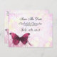 Un joli enregistrer la carte de date avec un style élégant. Un beau papillon violet peint captive votre attention dans ce design. Un élégant arrière - plan d'aquarelle défraîchi avec des fleurs colorées rose et jaune. Customisez à l'avant et à l'arrière avec vos informations de mariage à venir.