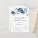 Élégante aquarelle florale bleu poussiéreux, blanc et marine bouquet de fleurs mariage enregistrer la date carte. La carte présente un script "Enregistrer la Date", qui peut être changé pour un type de police de votre choix qui sont disponibles ici lorsque vous cliquez sur le bouton "Personnaliser".