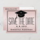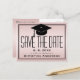Ceci sauver la date carte postale pour le diplôme d'études secondaires ou collégiales a un design chic minimaliste avec la typographie moderne en noir sur rose vif avec une casquette noire de graduation. Le modèle design est doté d'une bordure noire qui apporte une touche d'élégance. Sur le devant, on peut lire "Sauvez la Date, (votre date d'obtention du diplôme), pour assister à l'obtention du diplôme de (votre nom)." Le dos de la carte contient tous vos détails de graduation en noir avec un invitation de fête sur un arrière - plan rose vif. Conçu pour vous par des artistes ©Susan Coffey et Tim Coffey.