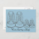 La carte postale présente une paire de baskets adultes à côté d'une paire de baskets pour enfants. Parfait pour annoncer votre nouveau-né ! Version pour garçon (fond bleu) et version pour fille (fond rose) et autocollants assortis également disponibles. Le texte peut également être personnalisé pour les fêtes de bébé et les faire-part de naissance.