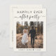 Elément moderne crème légère ou faire-part mariage privée combiné à une invitation à la réception. Le devant présente votre photo de jour de mariage et "Happily Ever After Party" dans un mélange de typographie simple et d'un script élégant avec des swashes. Sous votre photo, vous pouvez ajouter vos prénoms et votre date de mariage. Au verso, vous pouvez personnaliser votre message et votre invitation de manière plus détaillée, entrer votre adresse URL de site Web mariage pour créer un code QR que vos invités peuvent scanner pour obtenir plus d'informations et à RSVP en ligne, et ajouter vos noms dans un script de type signature.