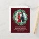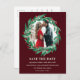 Une élégante couleur d'aquarelle rouge et verte de Noël illustration photo mariage enregistrer la date. Ajoutez votre photo de couple sur un arrière - plan bordeaux rouge.