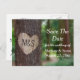 Le design est une photo d'un arbre avec un coeur sculpté. L'arrière - plan est un bokeh mou d'une forêt. Personnalisez ce fichier enregistrez l'invitation de date pour votre prochain mariage. Vous pouvez également ajouter vos initiales monographiques au coeur sculpté. Ces invitations de dates sont idéales pour les mariages extérieurs, rustiques, de nature, de campagne ou de forêt.