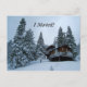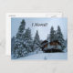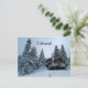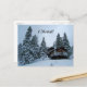 Customisez cette carte postale. Changez le texte, colorez ou ajoutez votre propre message ! Un cabine dans la neige, entourée par les pins grands neigés. photographie par la fleur de Minerva.