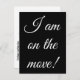 Des caractéristiques de conception ce de minimaliste de changement-de-adresse de carte postale le message "je suis sur le mouvement !" sur l'avant, et un message personnalisable sur le dos. Des cartes postales comme ceci pourraient être employées pour partager la nouvelle adresse debut de piste de l'expéditeur avec les amis et la famille.