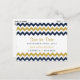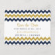 Simple mais élégante, la collection moderne chevron mariage est un design époustouflant avec un joli imprimé zig-zag bleu marine, or et blanc, parfait pour toute célébration mariage moderne. Ces cartes postales de date peuvent être personnalisées pour votre occasion spéciale et feraient les annonces parfaites pour votre mariage, douche nuptiale, fête de fiançailles, fête d'anniversaire et bien d'autres occasions spéciales. Ajoutez votre libellé personnalisé à cette conception à l'aide des cases "Modifier ce modèle de conception" situées à droite de l'élément, ou cliquez sur le bouton bleu "Customiser" pour arranger le texte, modifier les polices et les couleurs et ajouter des informations ou des images supplémentaires à cette conception.