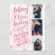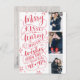 Cette carte postale moderne et chic de photo de vacances double comme économies la carte de date pour les couples nouvellement engagés. Les caractéristiques avant 3 de vos photos ont accentué les flocons de neige à la main dessinés et la main a marqué avec des lettres la typographie qui indique que les "joyeux baisers et les vacances chaudes souhaite du bientôt être M. et Mme" sur un arrière - plan rouge. Le dos comporte une pleine photo avec un recouvrement blanc transparent avec vos économies les détails de date, l'adresse et le message de coutume.