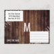 Élégantes, chic et rustiques planches en bois marron et lampes blanches en diamant, cartes postales mariages Save the Date. Ce design classique et sophistiqué convient parfaitement au couple marié branché et élégant. Personnalisez-vous avec votre propre message sur le devant ainsi qu'un monogramme customisé sur le dos. Toute la conception d'impression photo.